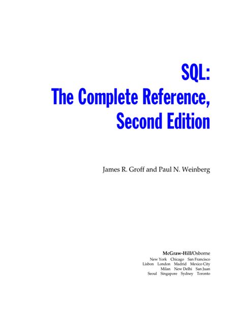 Reading Online DataBases - SQL - The Complete Reference Epub ManyBooks