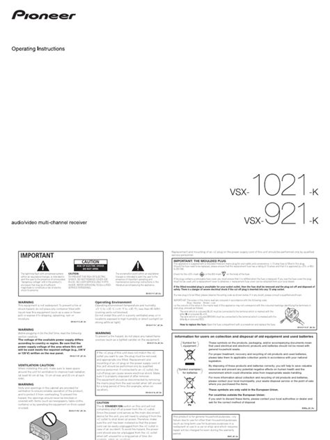 Read PIONEER VSX 921 MANUAL PDF Doc Internet Archive